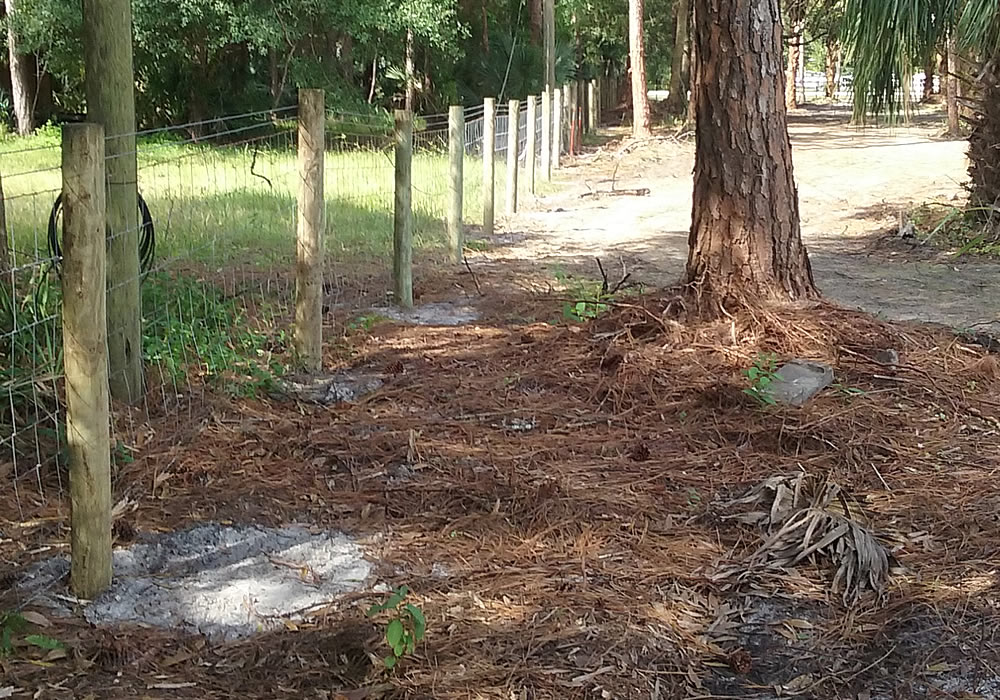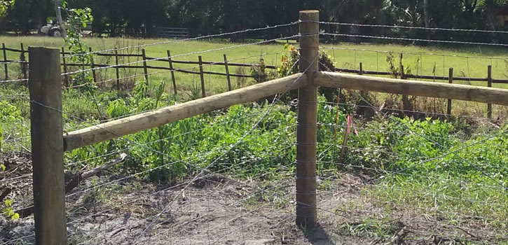 Field Fence commonly used for agricultural properties to secure livestock – Woven wire fence with round or square post.