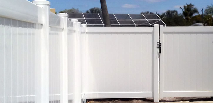 Vinyl is a popular choice in Florida because it’s basically weather proof, and in our tropical environment this is an important factor. White is the most popular color, but we have other options including tan, clay, stone and multi-color (special order).